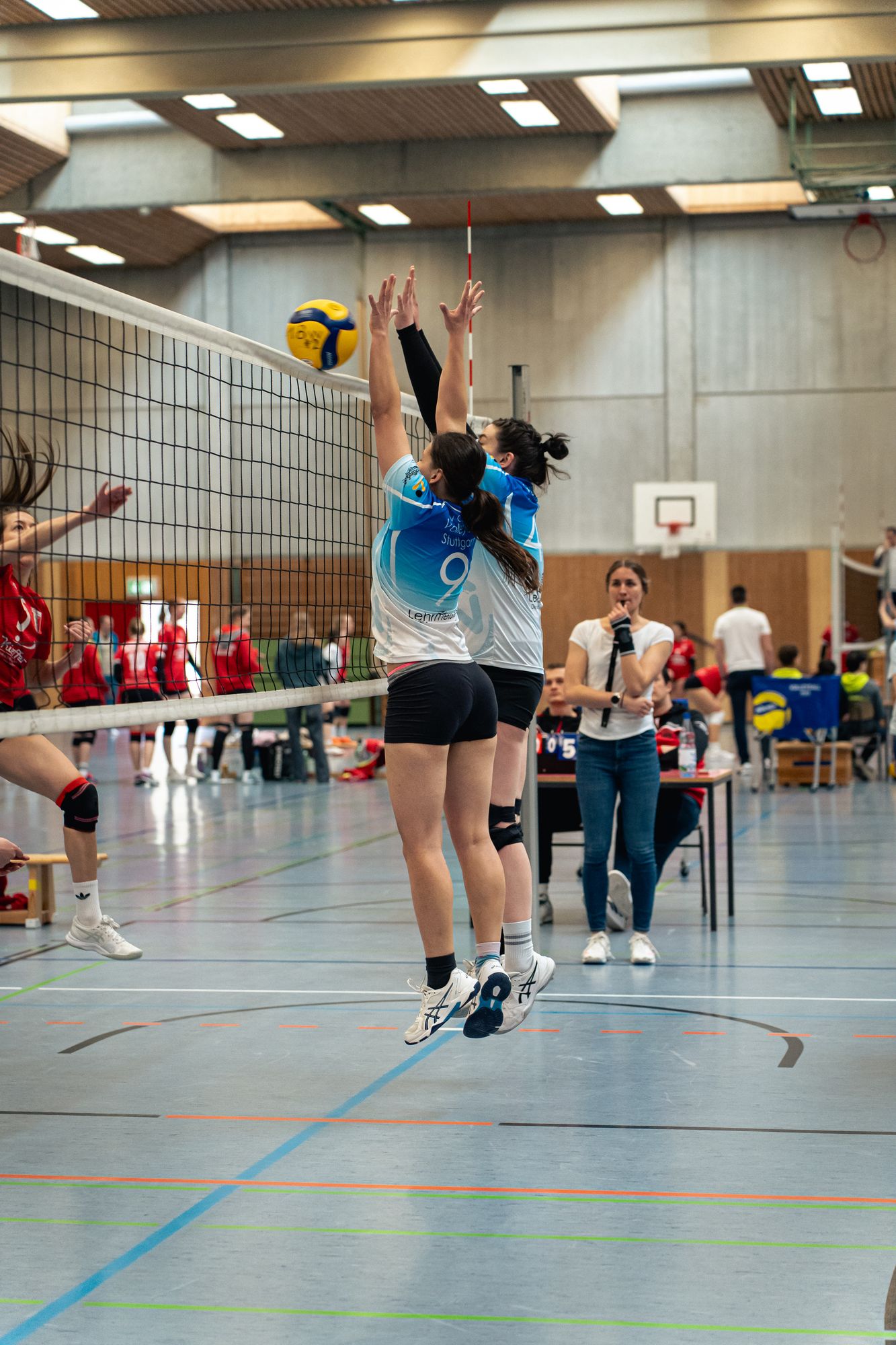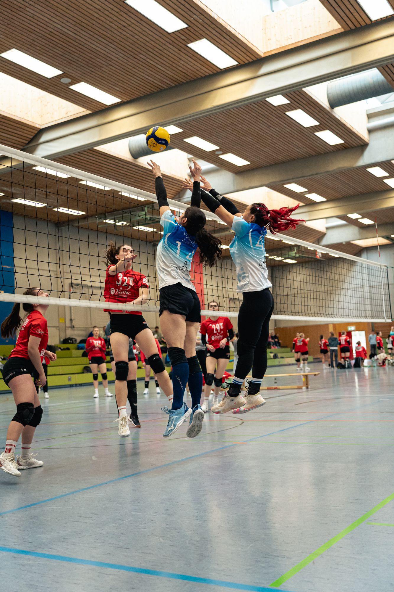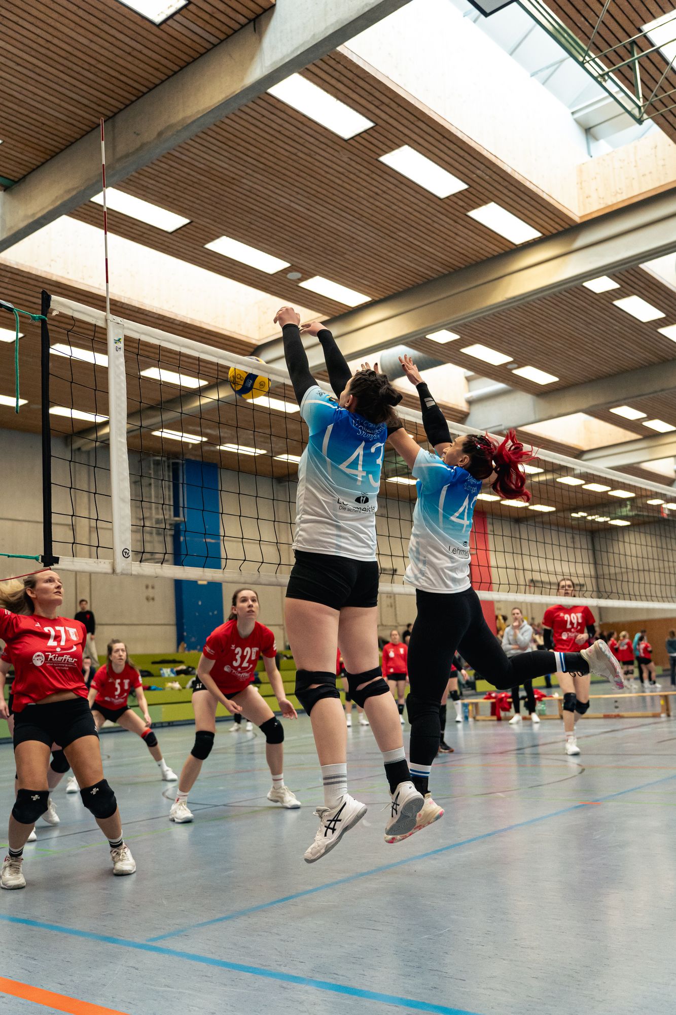 Zu Beginn traten unsere beiden Damenmannschaften im Halbfinale an. Damen 1 spielte gegen VolleyAlb/Brenztal2, musste sich jedoch nach einem intensiven Match in vier Sätzen mit 3:1 geschlagen geben. Damen 2 trat gegen TG Nürtingen 2 an und lieferte ebenfalls einen starken Kampf. Das Spiel endete im Tie-Break, aber auch hier mussten sich die TVC-Damen mit 3:2 geschlagen geben.