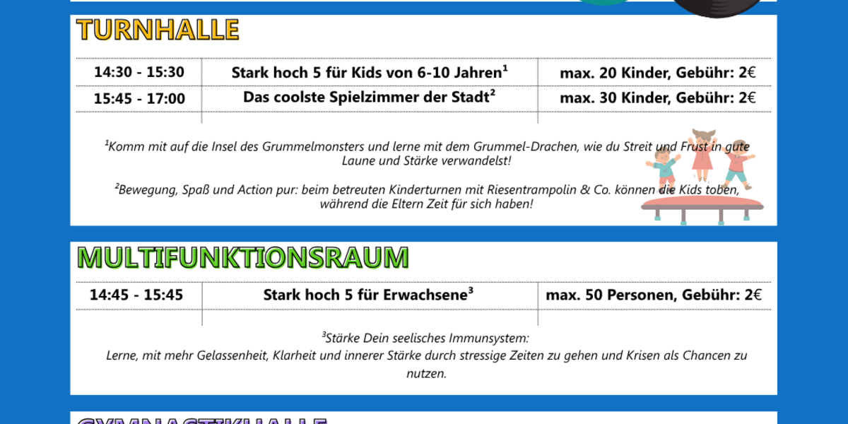 Viele Angebote haben begrenzte Teilnehmerzahlen – sichere dir deinen Platz frühzeitig: