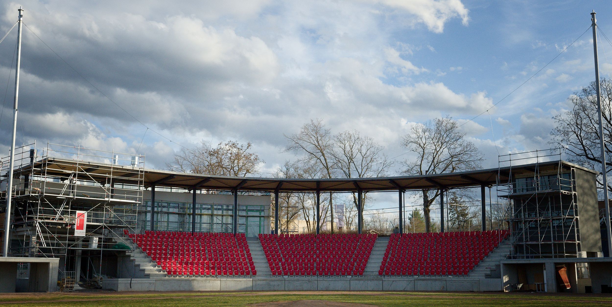 Am 12. Mai 2023 ist es endlich so weit. Nach rund zwei Jahren Bauzeit dürfen wir uns auf die Einweihung unseres Baseball-Stadions freuen. Freuen Sie sich auf ein spannendes Baseball Night Game, an dem die Stuttgart Reds die Mainz Athletics empfangen werden. Auch wenn bis dahin der Neubau noch nicht komplett fertiggestellt und ausgestattet sein wird, dürfen sich die Zuschauer schon jetzt auf die Annehmlichkeiten der neuen Tribüne mit 650 überdachten Sitzplätzen und uneingeschränktem großartigen Blick auf das Spielfeld freuen.