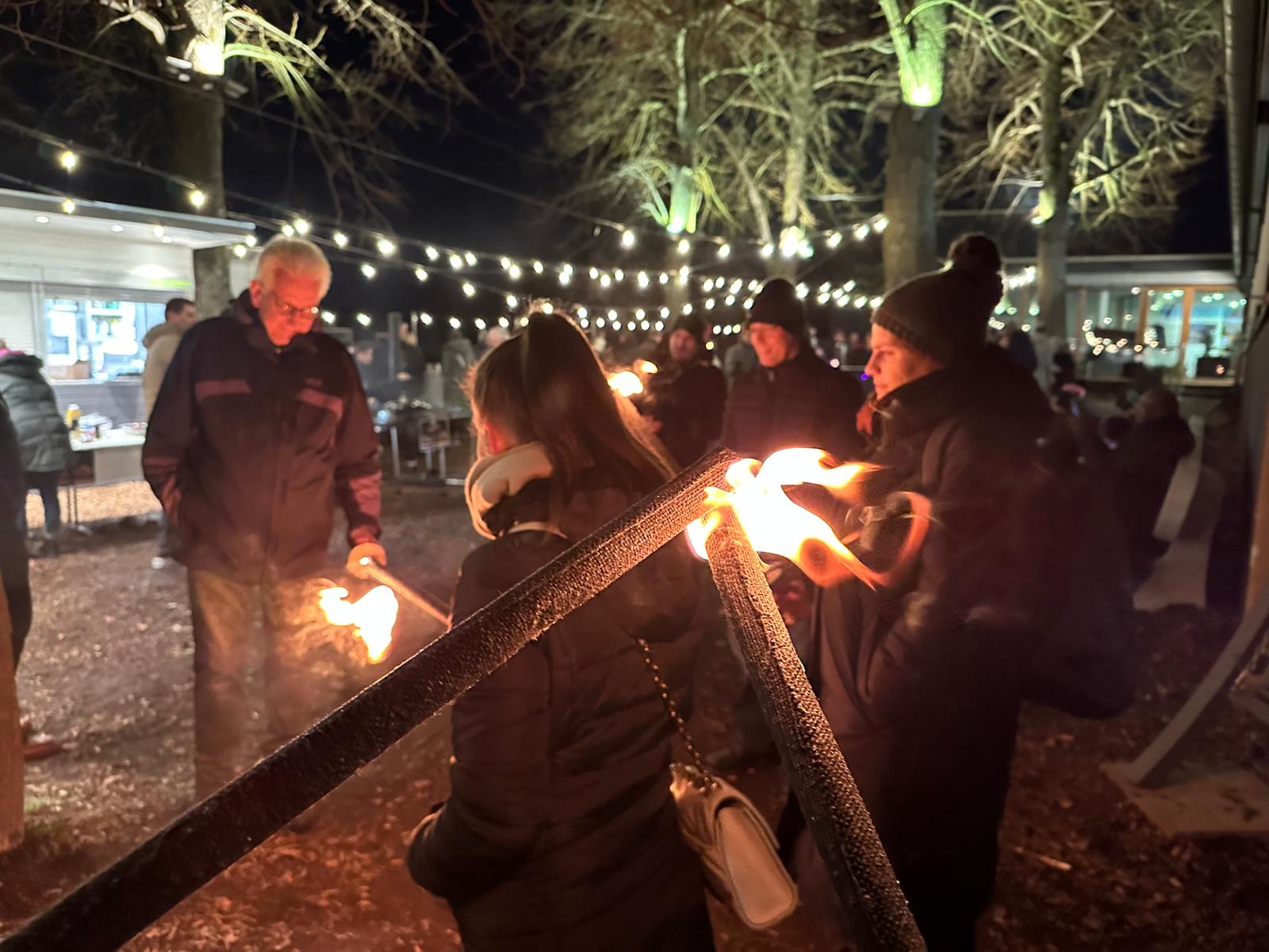 Ein weiterer Programmpunkt war die stimmungsvolle Fackelwanderung durch die Umgebung. Die leuchtenden Fackeln schufen eine besondere Atmosphäre und rundeten den winterlichen Abend perfekt ab.