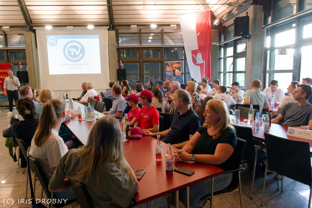 TVC Geschäftsführer Benjamin Löwinger begrüßte die anwesenden Gäste. Neben den Ehrengästen des Vereins wie Vizepräsident Sieghard Kelle, die Ehrenratsvorsitzende Karin Baumann sowie Ehrenratsmitglied Karl-Heinz Rahm waren einige Abteilungsleiterinnen und Abteilungsleiter zur Sportlerehrung gekommen. Zudem konnte Benjamin Löwinger den „Hausherrn des Abends, Bezirksvorsteher Bernd-Marcel Löffler begrüßen, der anschließend ein paar Worte an die Gäste richtete. In seinen Grußworten würdigte der Bezirksvorsteher die Arbeit im TVC und dessen Sport-Abteilungen und gratulierte den Sportlerinnen und Sportlern sowie ihren Trainerinnen und Trainern für die geleisteten Verdienste.