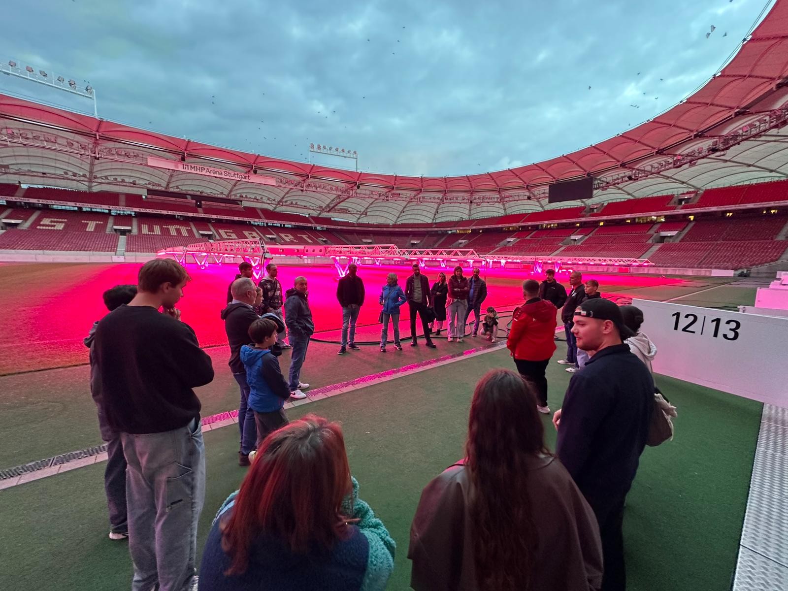 Unter der Leitung von Tour-Guide Anton konnten die Teilnehmenden zahlreiche sonst nicht öffentlich zugängliche Bereiche der Arena besichtigen. Neben der imposanten neuen Haupttribüne, der Spielerbank und der Cannstatter Kurve standen auch die Mixed Zone, der Spielertunnel sowie die Kabinen der Profis auf dem Programm. Auch exklusive Einblicke in den Tunnel Club, den Presseraum sowie den Aufwärmraum der Spieler durften nicht fehlen.