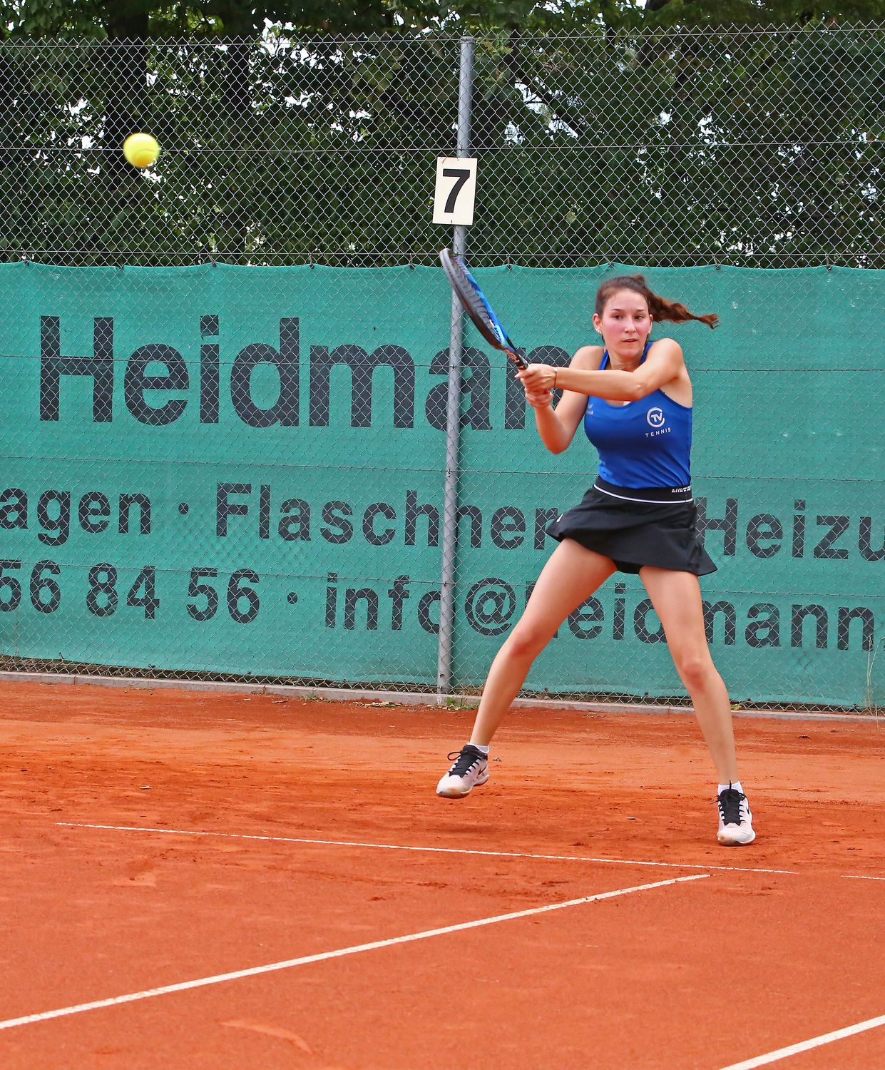 Leider hat es bei den Damen 1 des TVC mit der Meisterschaft und dem Aufstieg in ihrer Gruppe in der Bezirksklasse nicht ganz geklappt. Im Entscheidungsspiel der bisher unbesiegten Mannschaften unterlagen die Cannstatterinnen den Damen des TC Schönaich 1 im Heimspiel auf dem Schnarrenberg mit 3:6. Matchentscheidend für die Damen von Schönaich war die überragende Leistung ihrer Nummer 1, Clara Rüdiger. Die Cannstatter Nummer 1, Claudia Gürsch (LK 14), musste die Überlegenheit ihrer Gegnerin, die mit LK 9 die mit Abstand beste LK aller Spielerinnen hatte, bei ihrer 4:6-und 1:6-Niederlage trotz guten Kampfes anerkennen. Melanie Born konnte sich an Nummer 2 nach sehr ausgeglichenem Spiel nervenstark mit 6:4, 1:6 im Match-Tiebreak mit 10:7 durchsetzen. Ann-Kathrin Kostal, Johanna Müller-Ritz und Catrin Klink mussten ihre Einzel jeweils in zwei Sätzen verloren geben. So konnte auch der starke Auftritt von Janika Müller, die nach dem 1:6 im ersten Satz das Spiel zu ihren Gunsten mit 6:3 und 10:7 entscheiden konnte, die 4:2- Führung der Schönaicher Damen 1 nur in Grenzen halten. Die letzten Hoffnungen der Cannstatterinnen auf den Tagessieg und Aufstieg wurden gleich im ersten Doppel zerstört. Melanie Born und Ann-Kathrin Kostal mussten wiederum die Überlegenheit von Clara Rüdiger akzeptieren, die mit ihrer Partnerin Christin Reichel überlegen mit 6:1 und 6:3 gewann. Claudia Gürsch und Johanna Müller-Ritz unterlagen nach hartem Kampf mit 7:6, 0:6 und 7:10 erst im Match-Tiebreak. Den einzigen Cannstatter Doppelsieg holten Catrin Klink und Janika Müller in zwei Sätzen mit 7:6 und 6:2. Wie gut die Damen vom Schnarrenberg trotz dieser Niederlage aufgestellt sind, dokumentieren sowohl der fünfte Platz der Damen 2 in derselben Gruppe als auch die Meisterschaft der U 15-Juniorinnen in ihrer Gruppe in der Bezirksstaffel.