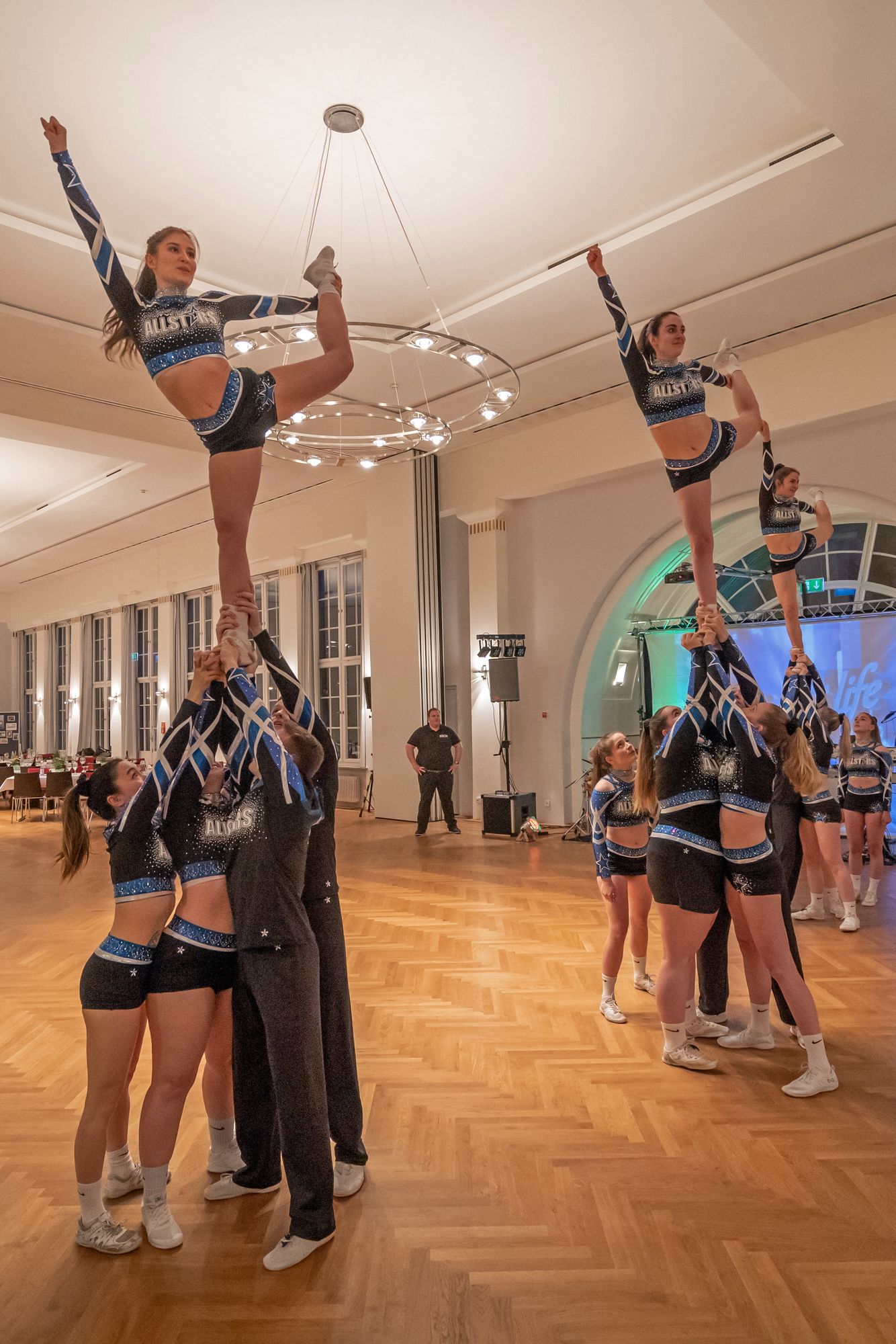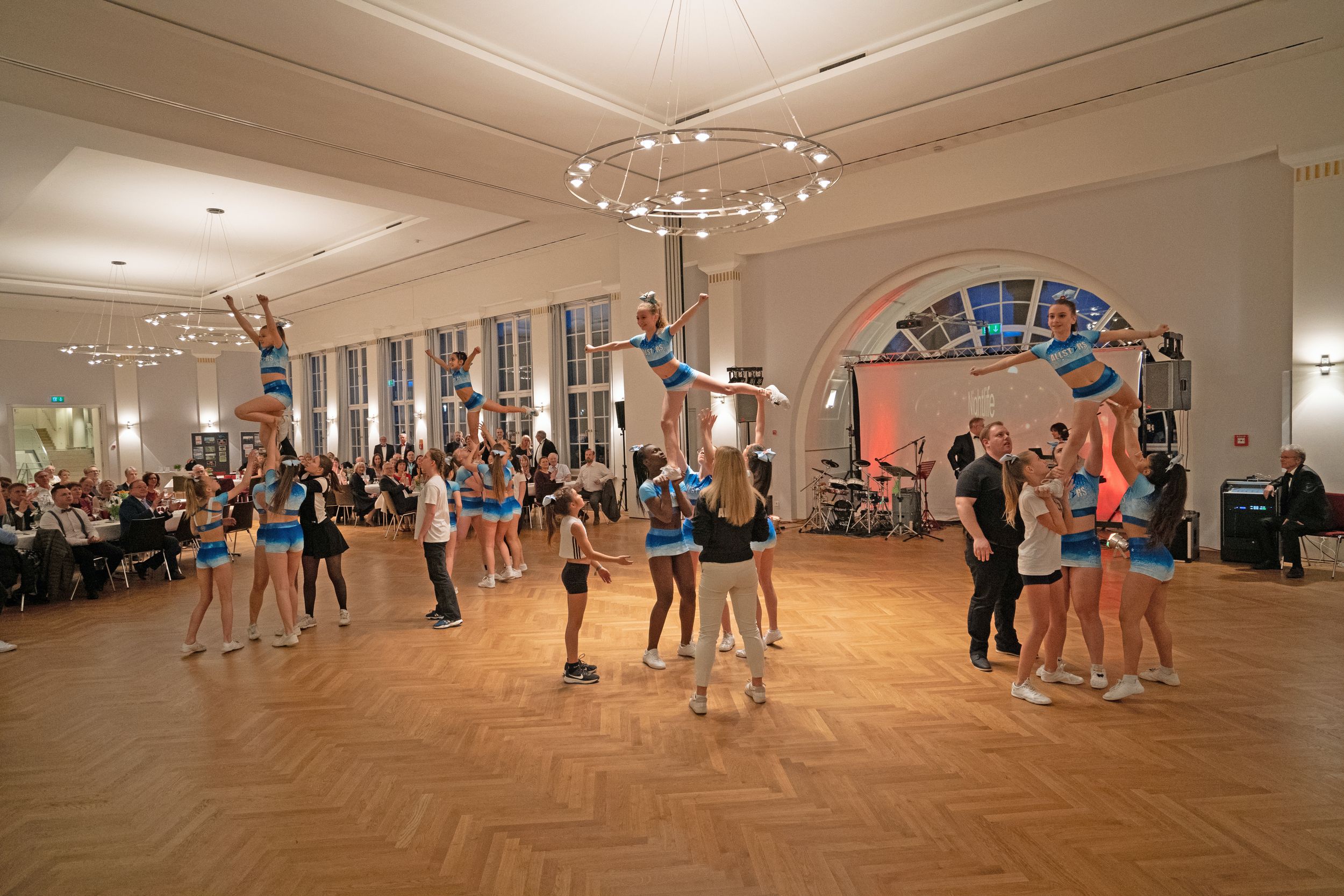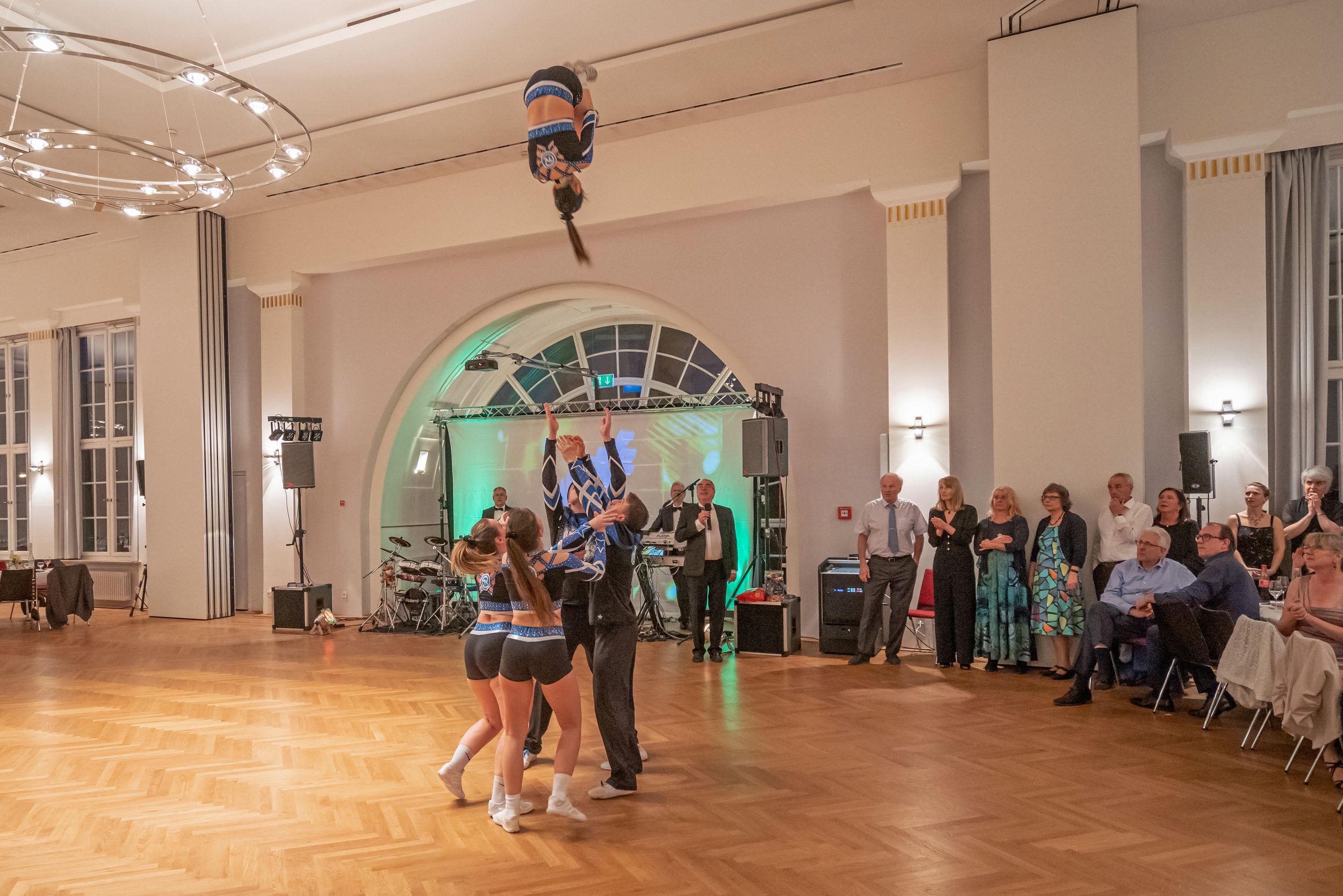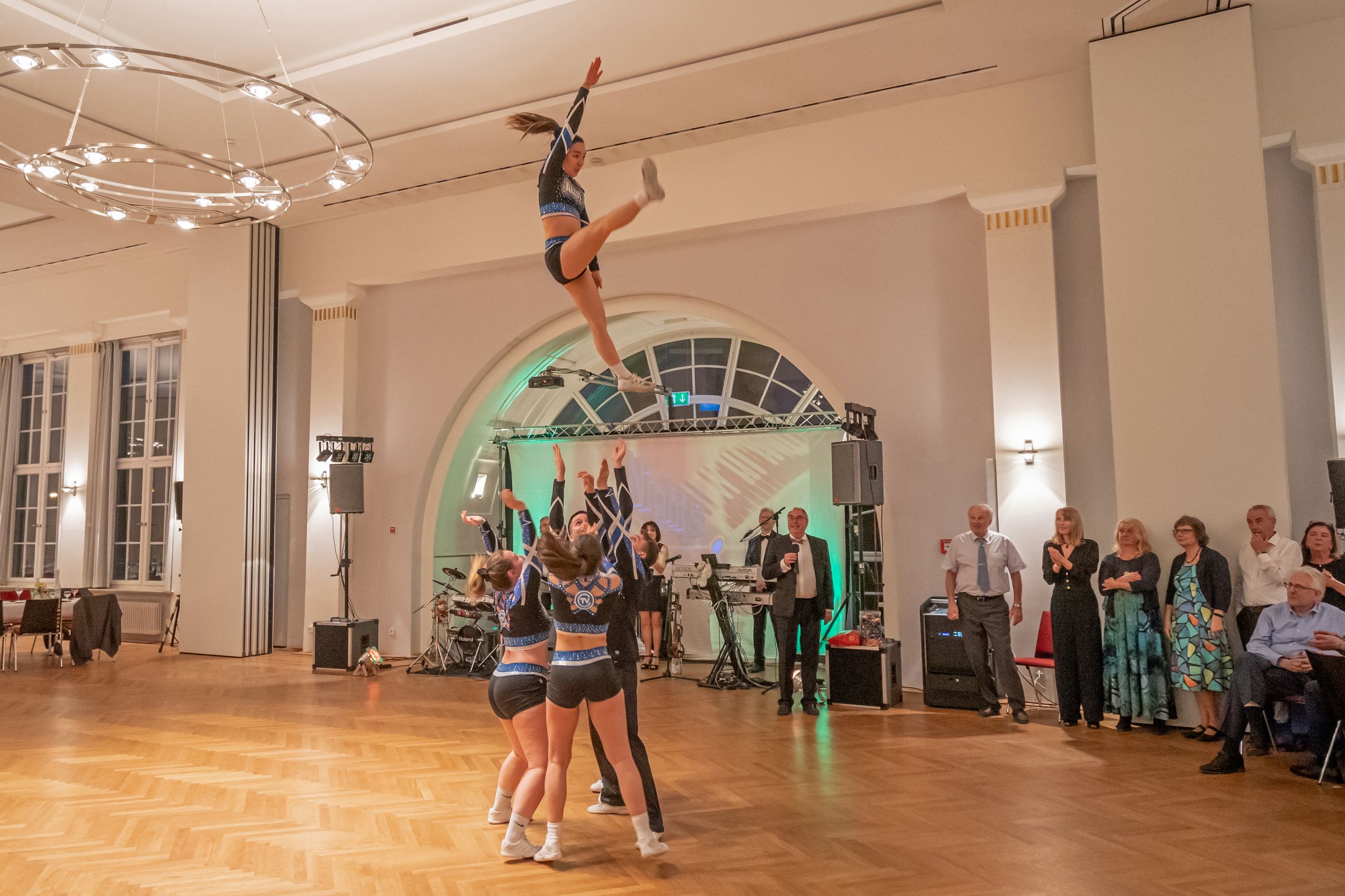 Einen ersten Glanzpunkt im Unterhaltungsprogramm setzten dann die TVC-Allstars mit einer viel beklatschten Akrobatikvorführung. Gekonnt und mit viel Energie wurden die Sportlerinnen in die Luft geschleudert und bildeten Türme aus Körpern, was den Zuschauern so manchen Begeisterungslaut entlockte. Natürlich konnten die Allstars nicht ohne Zugabe von der Tanzfläche.