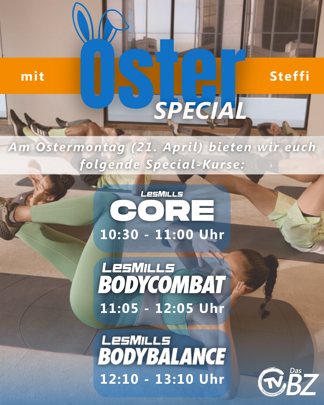 Am Ostermontag, den 21. April 2025, haben wir für euch im Bewegungszentrum etwas ganz Besonderes: drei aufregende Les Mills Kursspecials, die nicht nur Spaß machen, sondern auch jede Menge Energie bringen!
