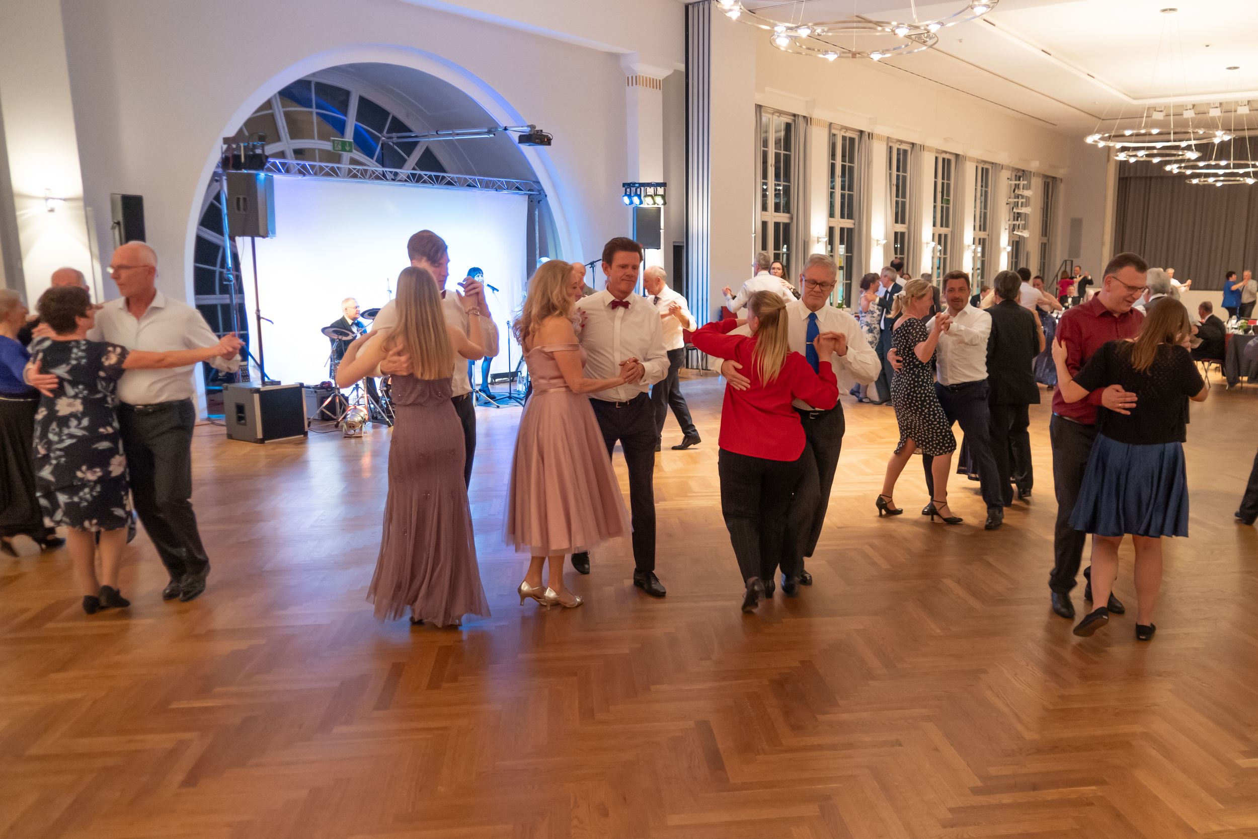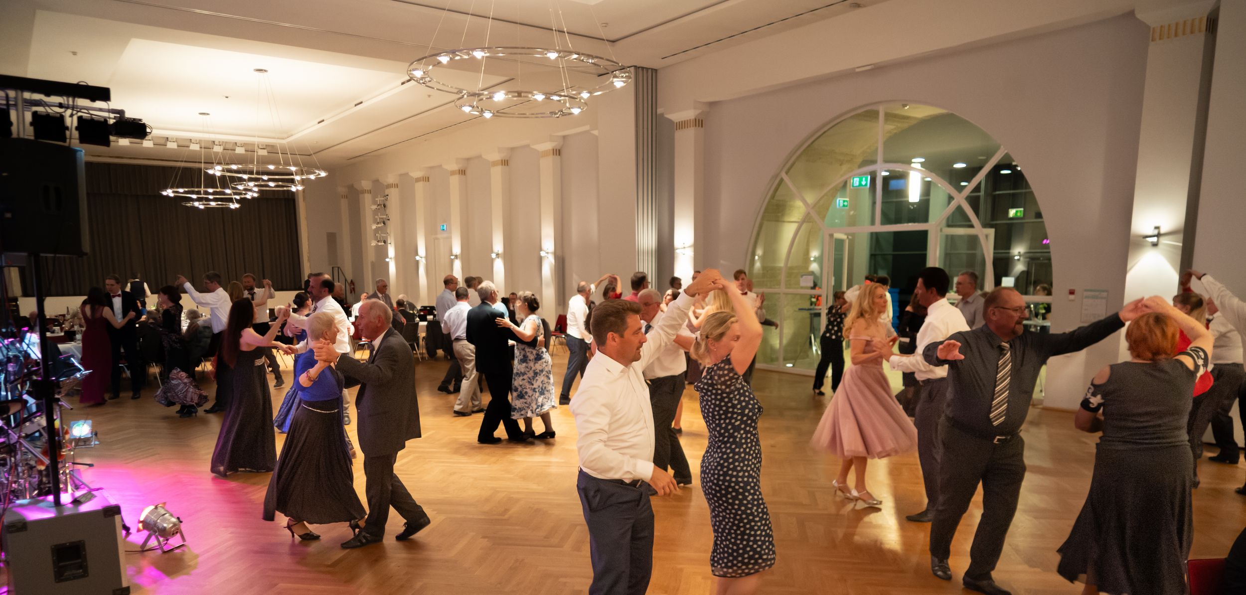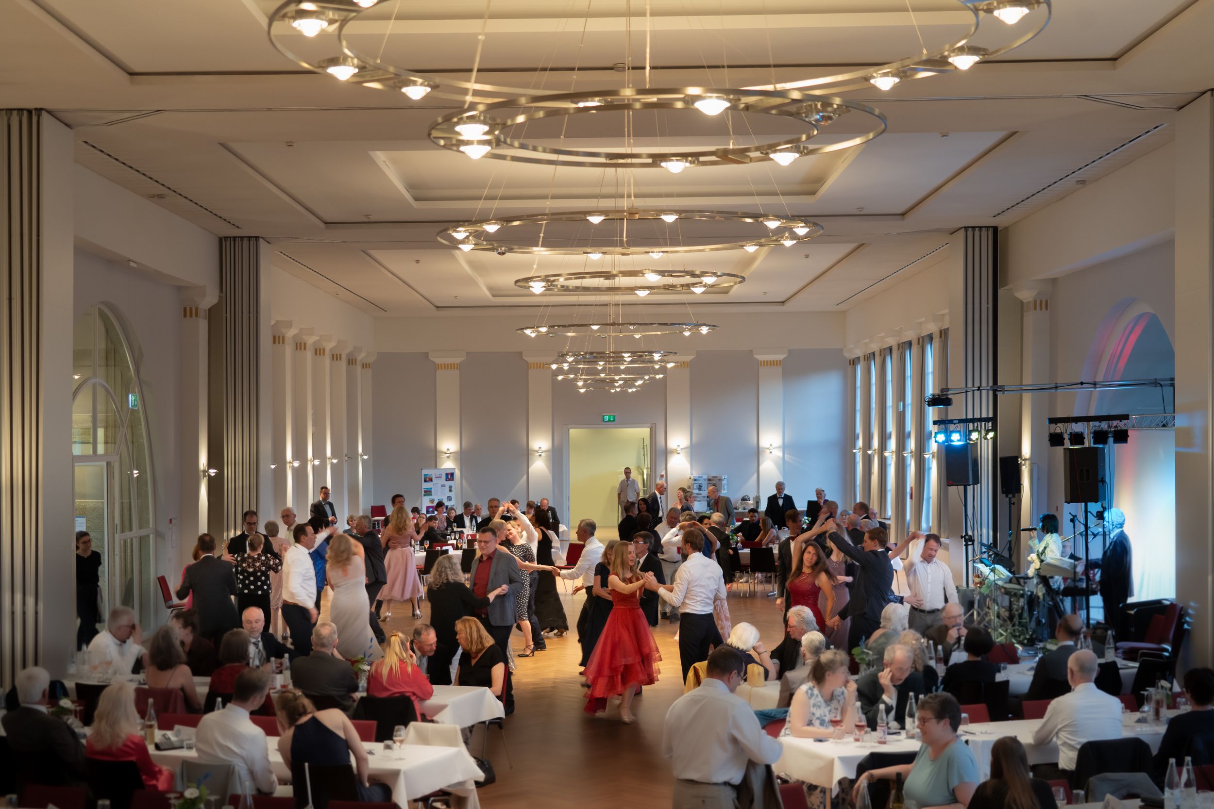 Am 27. April 2024 war es wieder so weit: Der TVC konnte viele Gäste im Großen Kursaal zum mittlerweile schon traditionellen TVC-Ball begrüßen. Karl-Heinz Gies führte mit Anekdoten und Gedichten rund um den Sport durch das abwechslungsreiche Programm. Die Tanzband „Nightlife“ sorgte für gepflegte und abwechslungsreiche Tanzmusik. Das tanzfreudige Publikum hat die große Tanzfläche gelobt, weil man dort tanzen kann, ohne gleich den nächsten Tänzer anzurempeln. Die tolle Atmosphäre des Kursaals und der Blumenschmuck in den Vereinsfarben blau und weiß auf den Tischen taten ihr Übriges, sodass sich alle wohlfühlten.