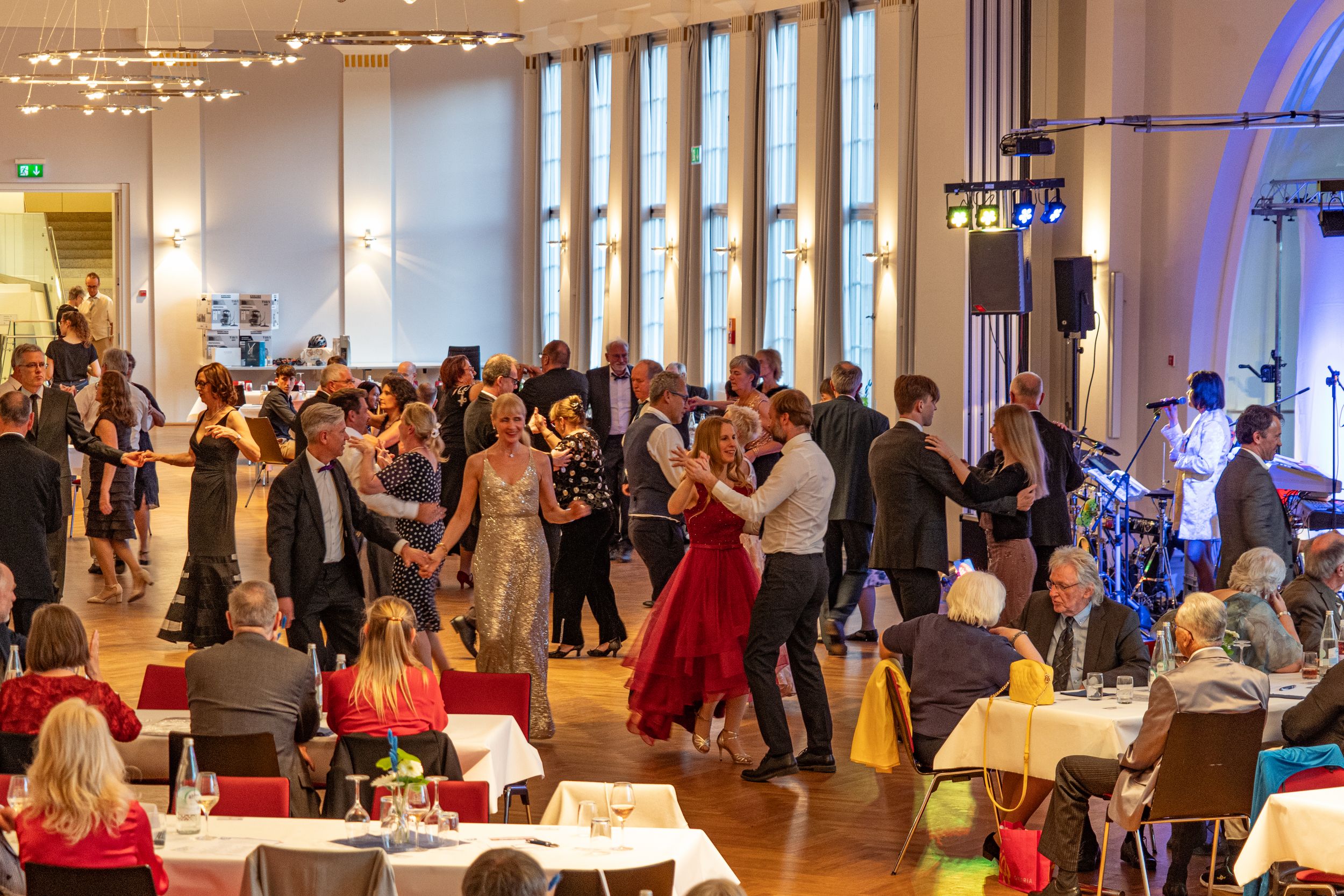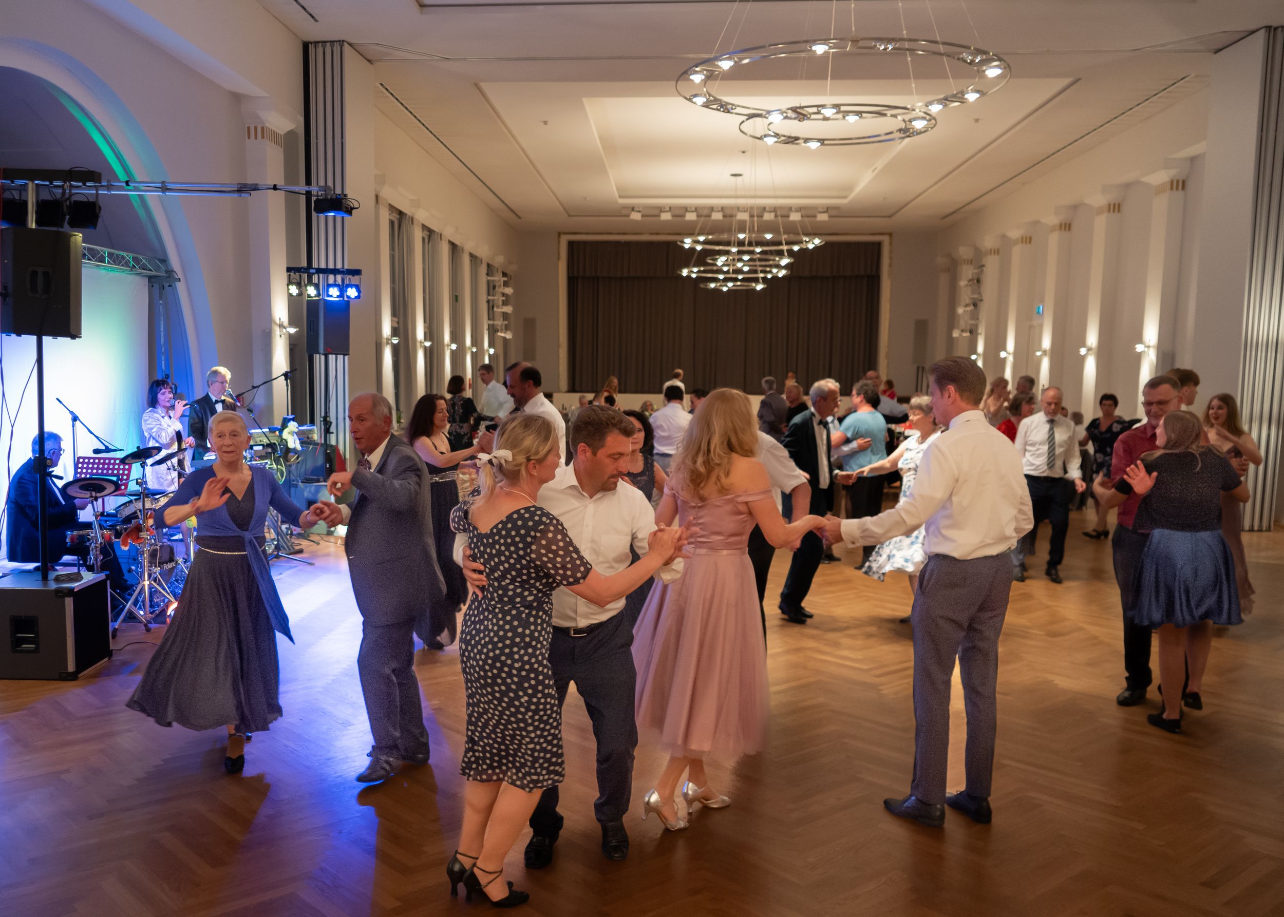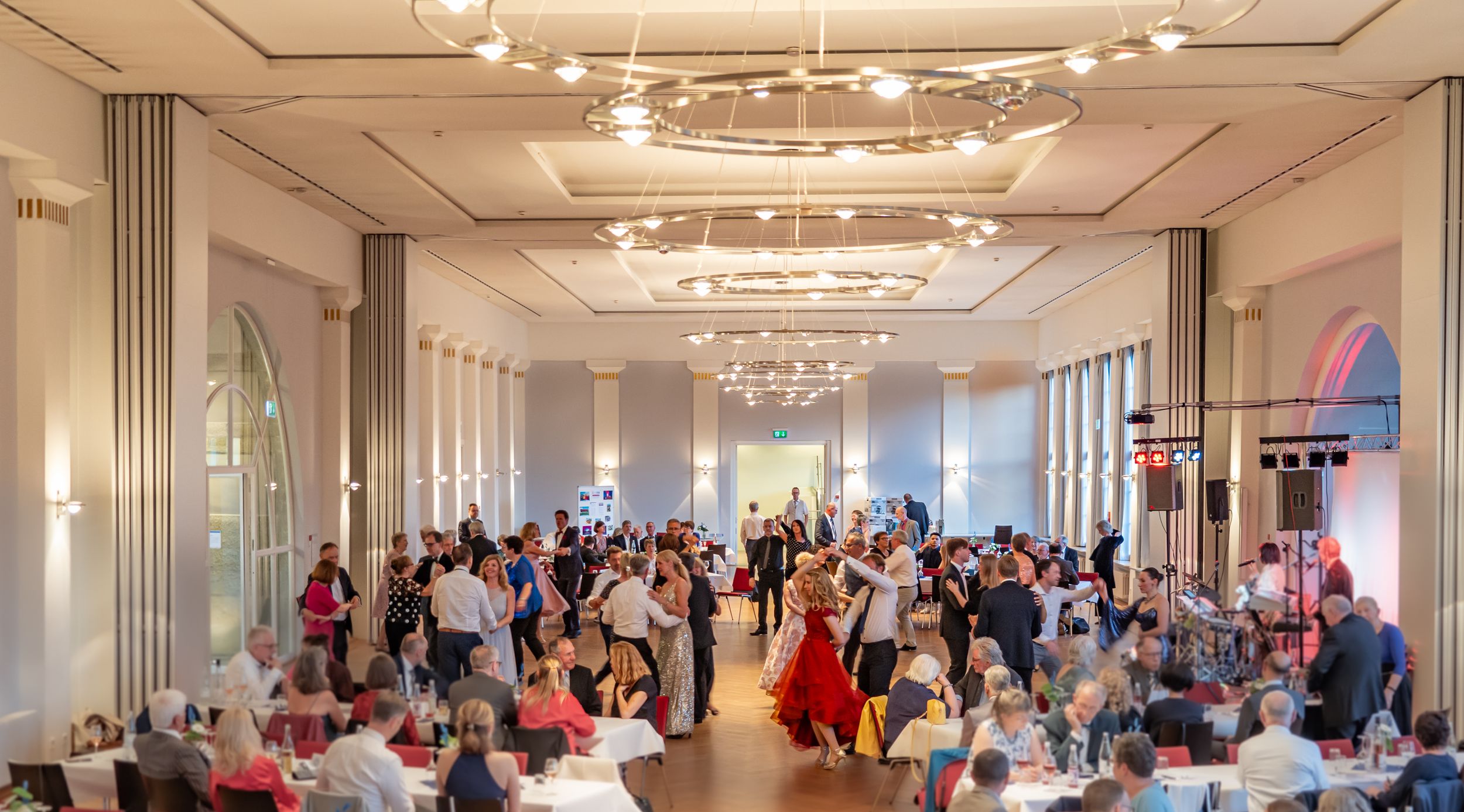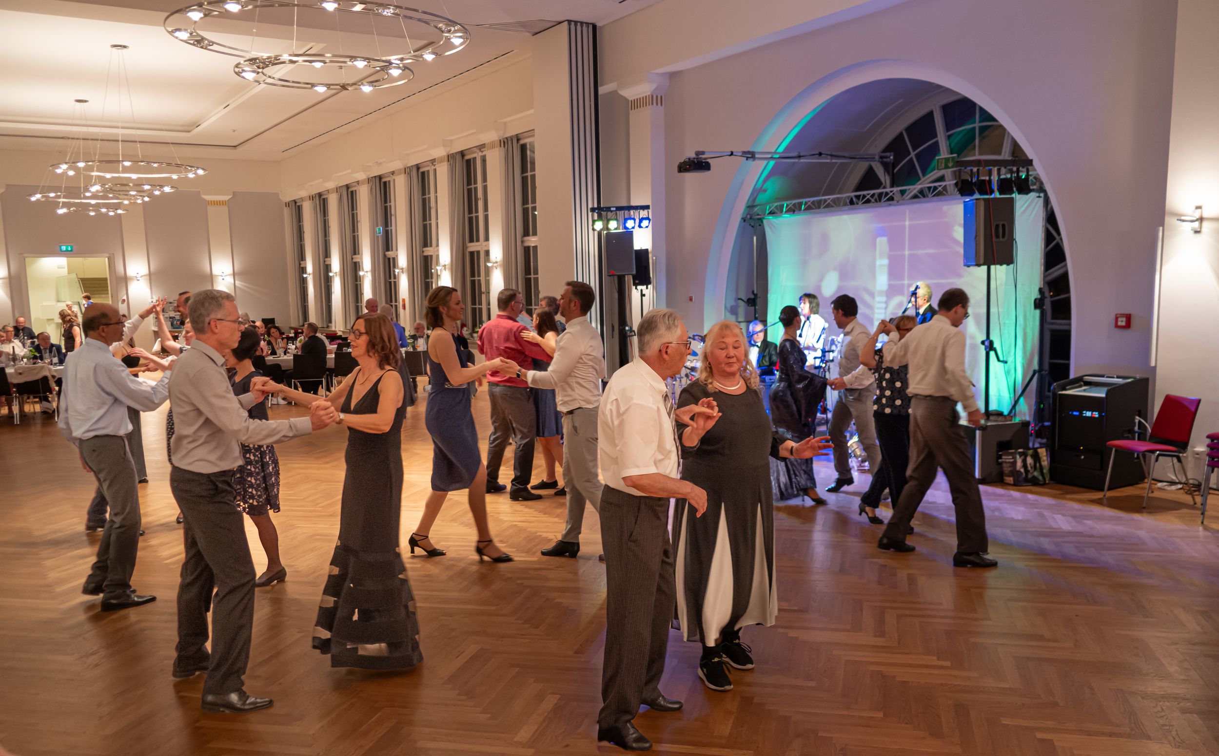 Am 27. April 2024 war es wieder so weit: Der TVC konnte viele Gäste im Großen Kursaal zum mittlerweile schon traditionellen TVC-Ball begrüßen. Karl-Heinz Gies führte mit Anekdoten und Gedichten rund um den Sport durch das abwechslungsreiche Programm. Die Tanzband „Nightlife“ sorgte für gepflegte und abwechslungsreiche Tanzmusik. Das tanzfreudige Publikum hat die große Tanzfläche gelobt, weil man dort tanzen kann, ohne gleich den nächsten Tänzer anzurempeln. Die tolle Atmosphäre des Kursaals und der Blumenschmuck in den Vereinsfarben blau und weiß auf den Tischen taten ihr Übriges, sodass sich alle wohlfühlten.