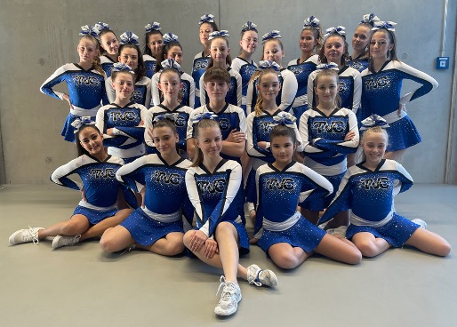 Die TVC Allstars strahlen in ihrer umwerfenden neuen Uniform und sind bereit, sich mit Style und viel Glanz auf Wettkämpfen zu präsentieren.