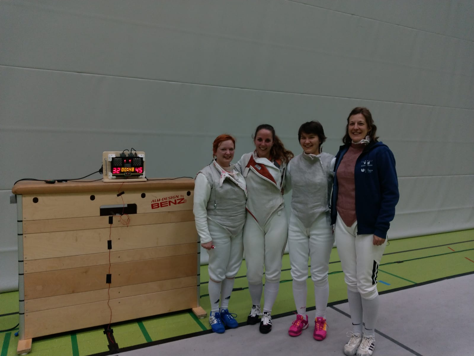 Nach einem Freilos in der ersten Runde des Deutschlandpokals der Damen im Florett haben sich unsere Mädels Marina Walter, Verena Glaser, Valerie Sporer und Katherina Biergrößlein souverän gegen TG Biberach mit einem 45 : 35 in die Runde drei gefochten.