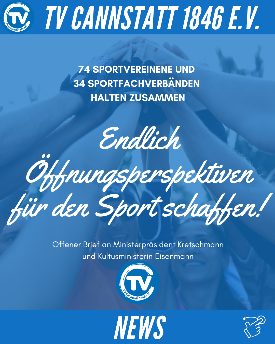 - Der Turnverein Cannstatt 1846 e.V. schickt zusammen mit 74 weiteren Sportvereinen und 34 Sportfachverbänden einen Offenen Brief an Ministerpräsident Kretschmann und Kultusministerin Eisenmann