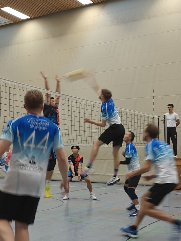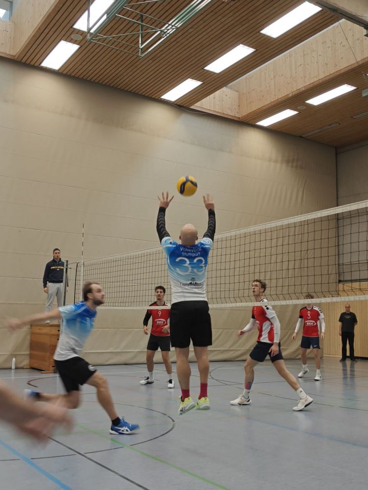 Im ersten Spiel des Heimspieltags bestimmte Cannstatt von Anfang an das Tempo. Die Annahme stand, der Block funktionierte, und Zuspieler Mateus (33) zeigte einmal mehr, warum sein Name in der Mannschaft fast synonym für „Traumpass“ steht. Egal ob kurze Pässe über die Mitte oder butterweiche Bälle auf außen – alles kam punktgenau. Und vorne? Da glühte die Halle: Florian (32) hatte „Hot Hands“ – im wahrsten Sinne. Mal links, mal rechts, mal mit so viel Wucht, dass die gegnerische Feldhälfte kurz vibrierte. Jeder Angriff ein Highlight, jede Finte ein Augenzwinkern.