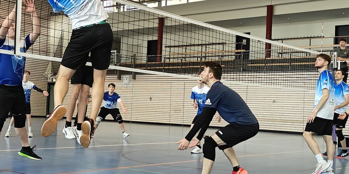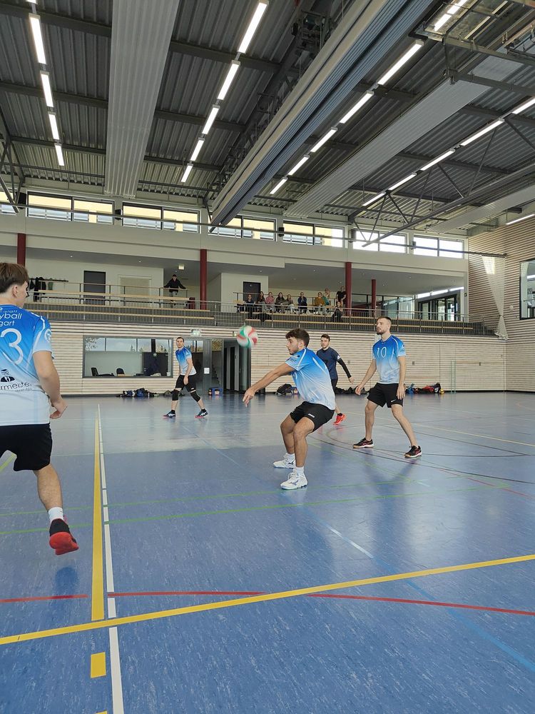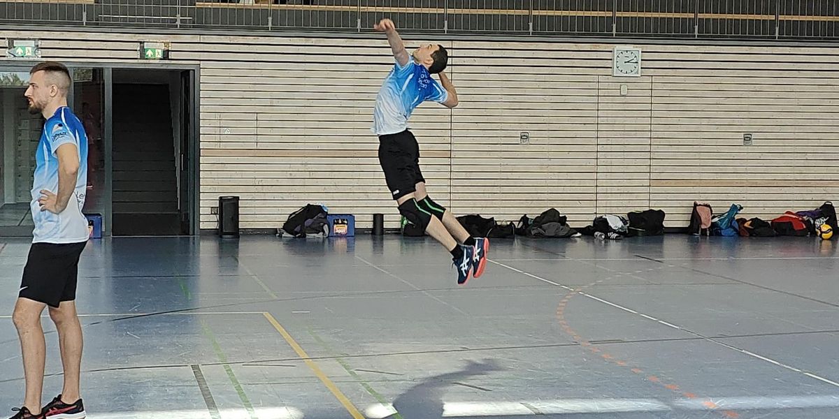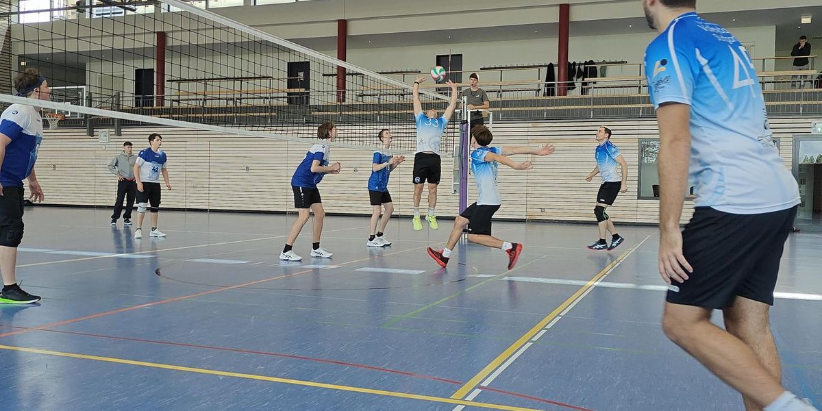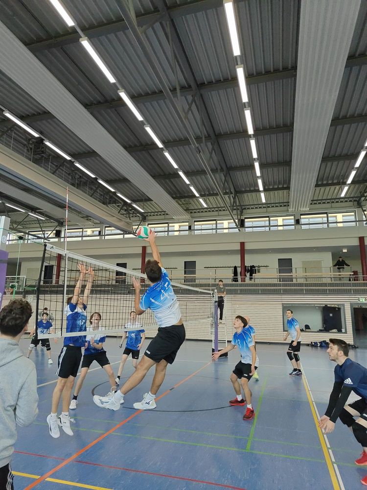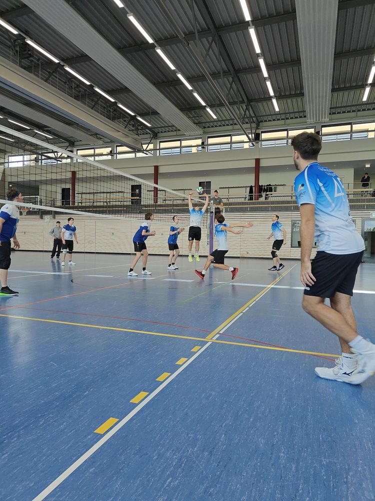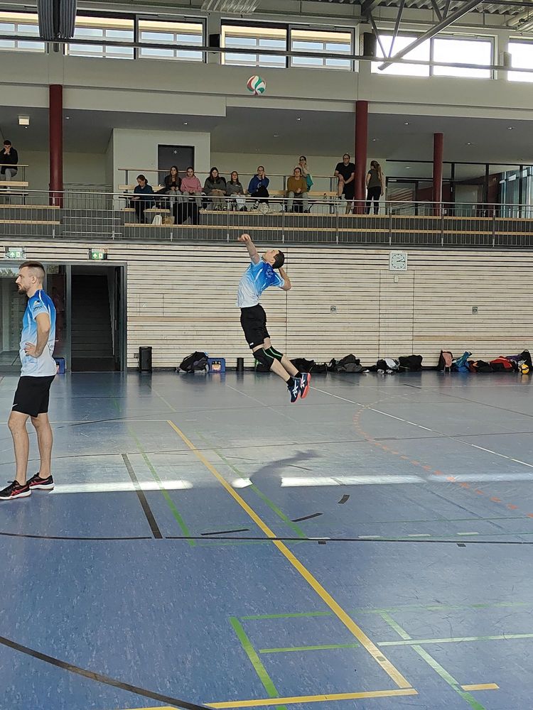 Zum zweiten Satz durfte sich nun auch der dritte Neuzugang Flo auf Außen profilieren. Auch mit allen drei Neuen auf dem Feld funktionierte die Mannschaft wie ein Schweizer Uhrwerk. So konnten einige feine Spielzüge aufs Parkett gezaubert werden. Nach lässiger Annahme im Halbfeld nahm Tom maß für den „Hit des Tages“ und donnerte den Ball unbarmherzig in den Dreimeterraum. Auch Capitano Martin, selbsternannter MVP des Universums, packte seine weltbekannte linke Pranke aus – und drosch den Ball in einem Winkel, den selbst Pythagoras nicht berechnet hätte, auf den Boden. So sammelten sich schnell 23 Punkte auf dem Scoreboard. Nach schlechtem ersten Aufschlag entschied sich unser Interim-Coach Marit für die letzten zwei Aufschläge den eigentlichen Spielertrainer Mateus die Höchststrafe zu verpassen und wechselte ihn für Nik aus. Dieser fasste sich ein Herz und anscheinend auch Inspiration beim Spielertrainer – der Aufschlag: Bodenlos und im Netz. Das reichte aber nicht, um uns selbst ein Bein zu stellen. Kurz danach war auch der zweite Spielabschnitt in der Tüte.