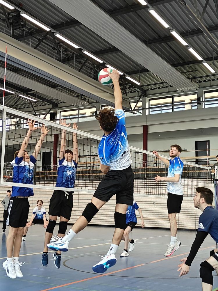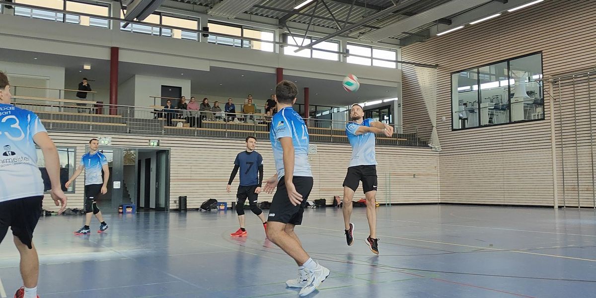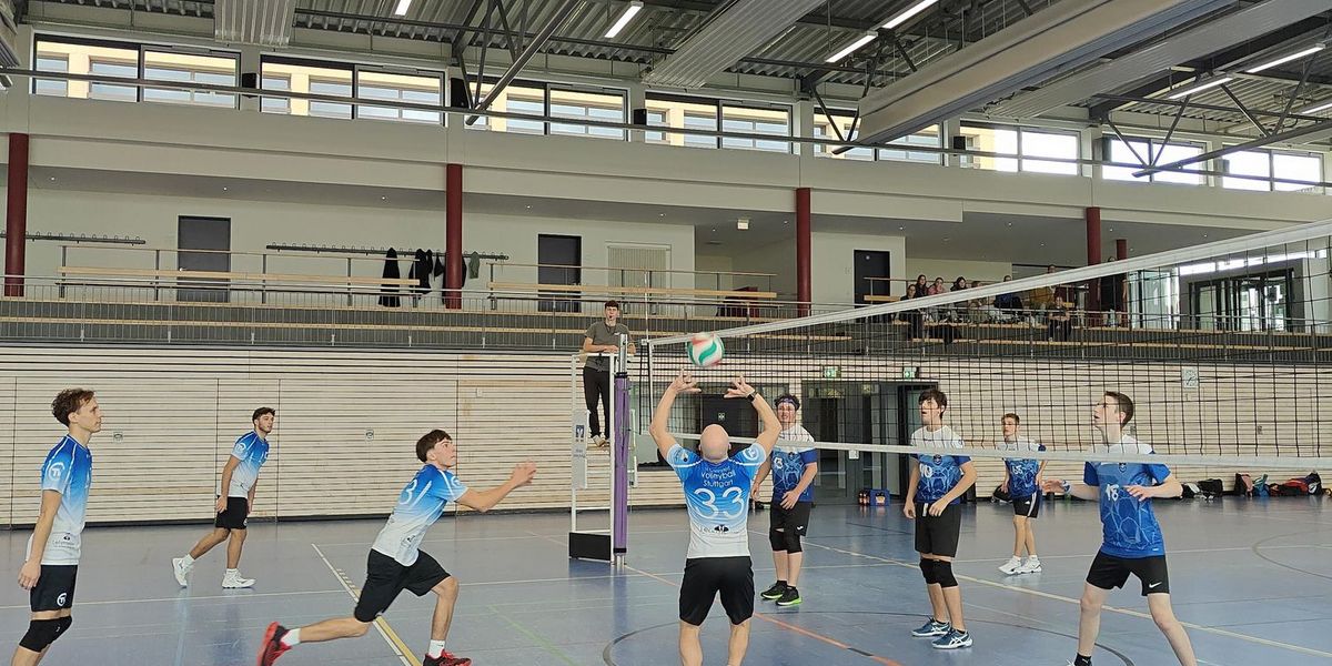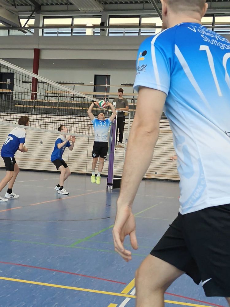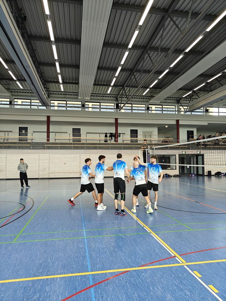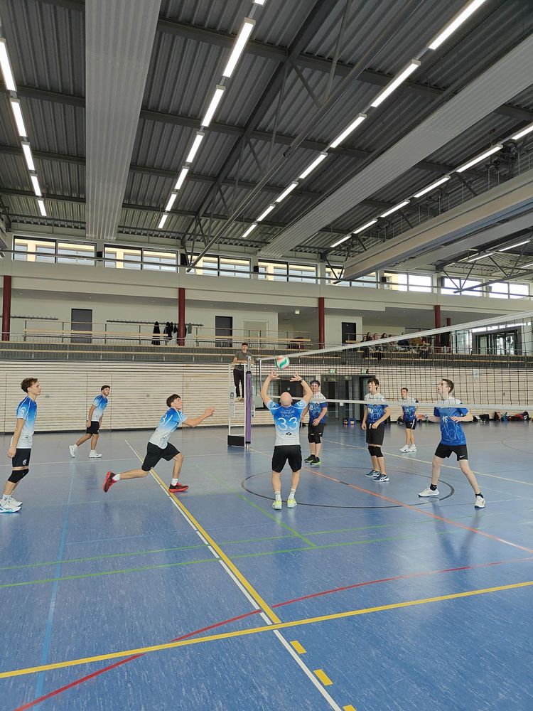 Zum zweiten Satz durfte sich nun auch der dritte Neuzugang Flo auf Außen profilieren. Auch mit allen drei Neuen auf dem Feld funktionierte die Mannschaft wie ein Schweizer Uhrwerk. So konnten einige feine Spielzüge aufs Parkett gezaubert werden. Nach lässiger Annahme im Halbfeld nahm Tom maß für den „Hit des Tages“ und donnerte den Ball unbarmherzig in den Dreimeterraum. Auch Capitano Martin, selbsternannter MVP des Universums, packte seine weltbekannte linke Pranke aus – und drosch den Ball in einem Winkel, den selbst Pythagoras nicht berechnet hätte, auf den Boden. So sammelten sich schnell 23 Punkte auf dem Scoreboard. Nach schlechtem ersten Aufschlag entschied sich unser Interim-Coach Marit für die letzten zwei Aufschläge den eigentlichen Spielertrainer Mateus die Höchststrafe zu verpassen und wechselte ihn für Nik aus. Dieser fasste sich ein Herz und anscheinend auch Inspiration beim Spielertrainer – der Aufschlag: Bodenlos und im Netz. Das reichte aber nicht, um uns selbst ein Bein zu stellen. Kurz danach war auch der zweite Spielabschnitt in der Tüte.