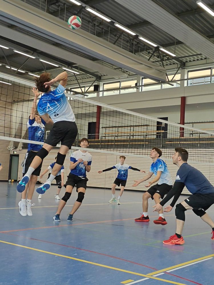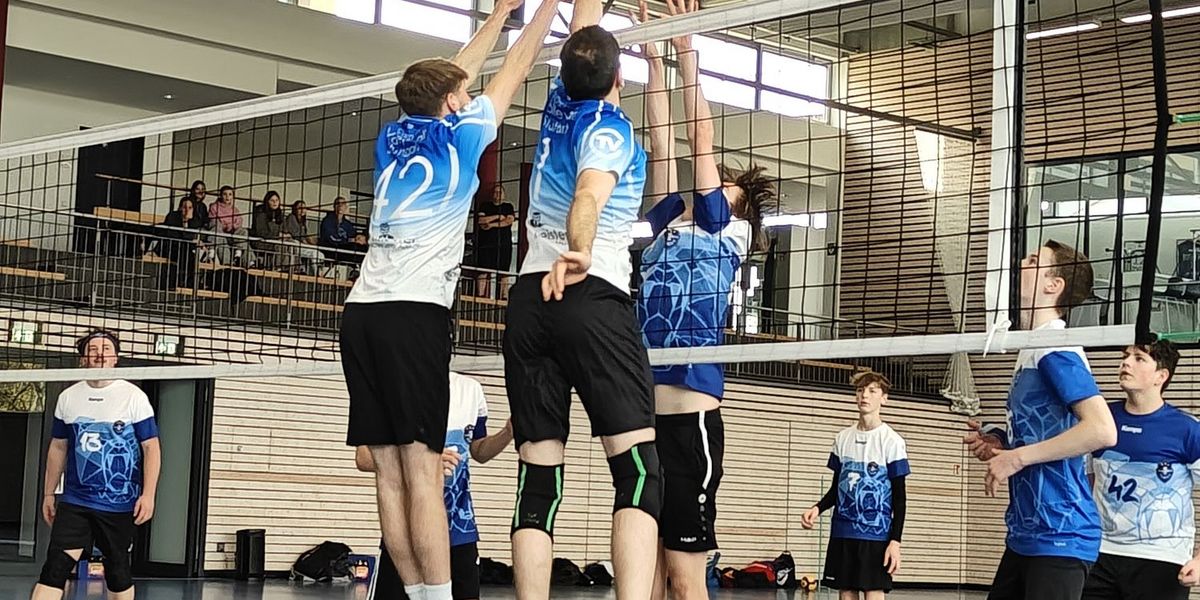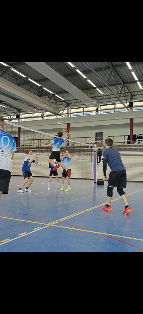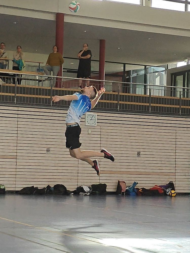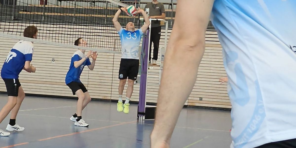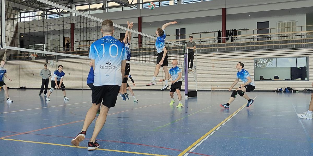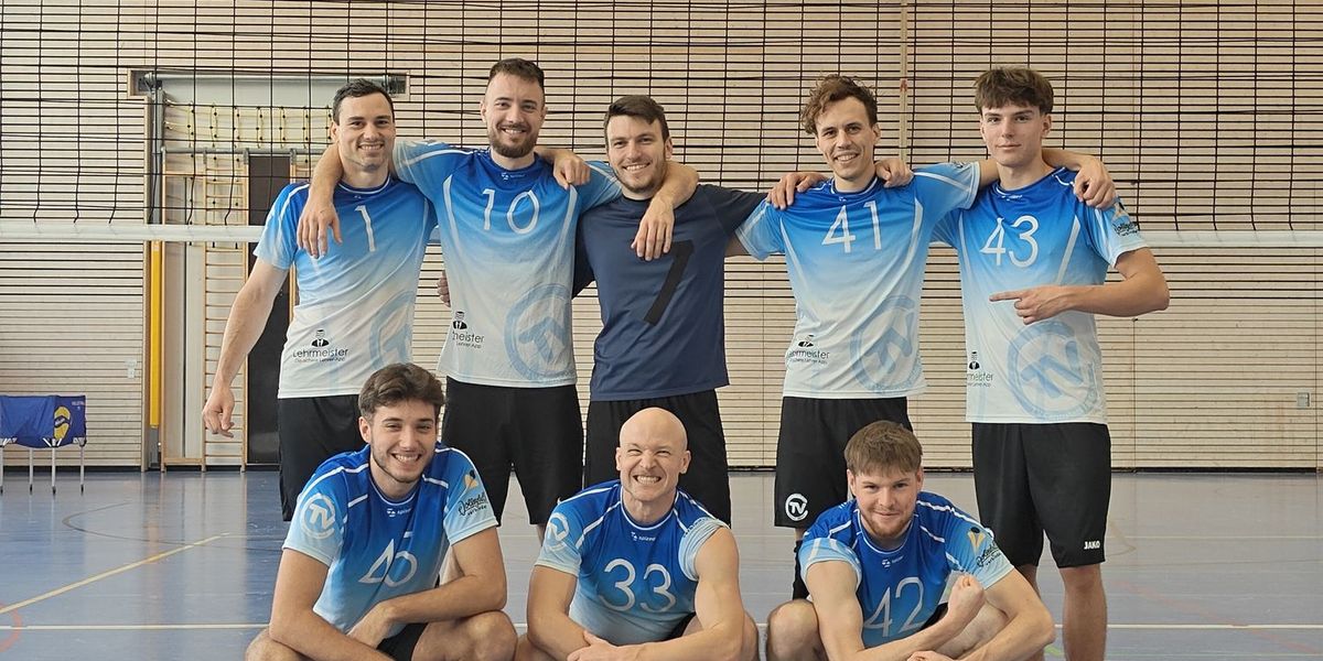 Zum zweiten Satz durfte sich nun auch der dritte Neuzugang Flo auf Außen profilieren. Auch mit allen drei Neuen auf dem Feld funktionierte die Mannschaft wie ein Schweizer Uhrwerk. So konnten einige feine Spielzüge aufs Parkett gezaubert werden. Nach lässiger Annahme im Halbfeld nahm Tom maß für den „Hit des Tages“ und donnerte den Ball unbarmherzig in den Dreimeterraum. Auch Capitano Martin, selbsternannter MVP des Universums, packte seine weltbekannte linke Pranke aus – und drosch den Ball in einem Winkel, den selbst Pythagoras nicht berechnet hätte, auf den Boden. So sammelten sich schnell 23 Punkte auf dem Scoreboard. Nach schlechtem ersten Aufschlag entschied sich unser Interim-Coach Marit für die letzten zwei Aufschläge den eigentlichen Spielertrainer Mateus die Höchststrafe zu verpassen und wechselte ihn für Nik aus. Dieser fasste sich ein Herz und anscheinend auch Inspiration beim Spielertrainer – der Aufschlag: Bodenlos und im Netz. Das reichte aber nicht, um uns selbst ein Bein zu stellen. Kurz danach war auch der zweite Spielabschnitt in der Tüte.